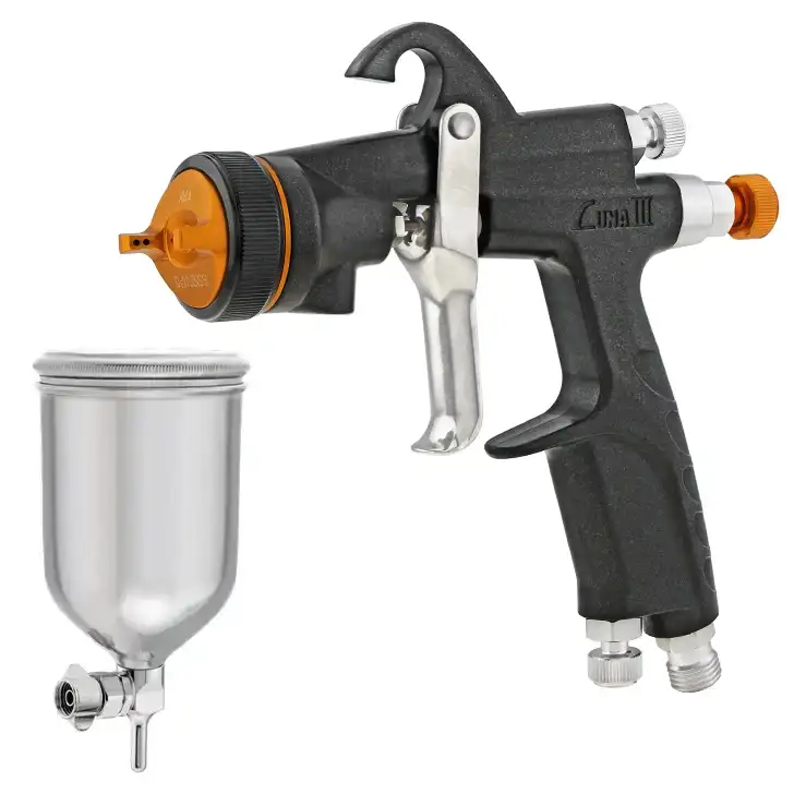 DeVILBISS デビルビス LUNA3 重力式 ハンドスプレーガン シリーズは自動車補修に最適で安定した粒子径で高品質な仕上がりを実現できます。 定評のLUNA2シリーズを継承しつつ、ハンドリング性能の向上を目指し、ガンボディー、エアキャプ、各ツマミのデザインを一新しました。