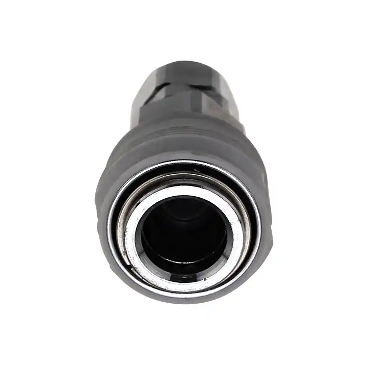 23SN ハイカプラタイプ・3分ホース用 は3分ウレタンホース接続用です。 プラグをソケットに押込むだけのワンタッチ操作で簡単、確実に接続できます。 工場内のエアー配管やエアー工具の接続において汎用性に優れたソケットです。 接続口は内径Φ8.2mm~Φ8.5mmのウレタンホース用です。 本体の一部にラバーカバーが付いているので脱着しやすくなっています。 ホースバンド等は必要なくホースを接続して、ネジを締め付けるだけです。