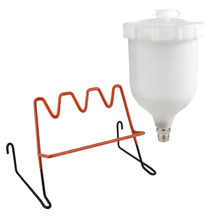 DeVILBISS デビルビス アクセサリーキット ACCKIT-01は、デビルビス樹脂製センターカップGFC-501とセンターカップガンやサイドカップガンに使えるマルチガンホルダー803616のセットになります。 デビルビス樹脂製センターカップGFC-501は568mLの容量で主にデビルビスDV-1/Gti-PRO/Gti-PRO LITE/NEPTUNEのシリーズに適合します。