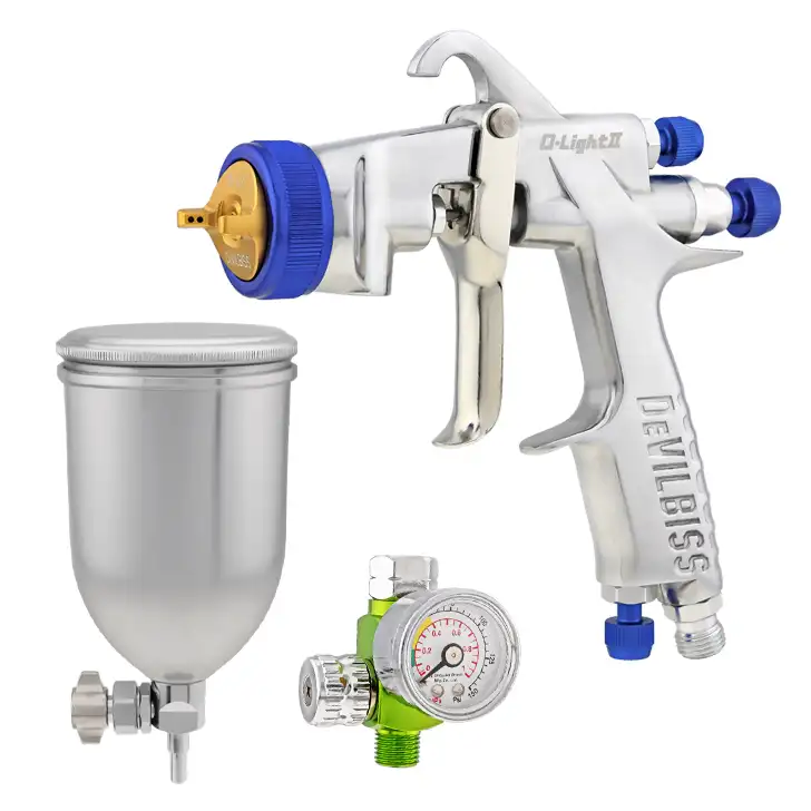 O-Light II オーライト2 LVMP 重力式スプレーガン シリーズは軽量で作業性のよいスプレーガンです。 人間工学を基に改良されたエルゴノミクスデザインで握り部のフィット感が向上しました。 全機種に塗着効率が高いLVMP低流量中圧力仕様を採用し高微粒化・高塗着効率を実現しています。 1台で広範囲の用途にご使用いただける万能スプレーガンです。