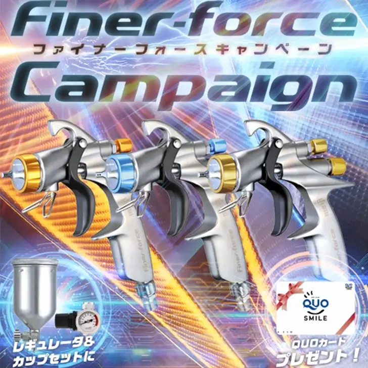 セール中! 明治機械製作所 自動車補修専用スプレーガン ファイナーフォース FINER FORCE +カップ4GF-U +レギュレターMAR 3点セット QUOカード1000円分付き