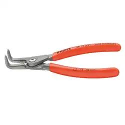簡単に軸用スナップリングの取り付け、取り外しができます。 先端チップは強靭な特殊バネ鋼製です。 長時間使用における高負荷に耐え、ツール寿命は一般的なスナップリングプライヤーの10倍以上です。 スクリュージョイントを採用しており、大変滑らかに可動します。 鍛造により大変頑丈です。 先端チップはリングとの接触面積が広いため、リングを歪めず確実に保持することができます。 スリムなヘッド形状により、狭い場所での作業も可能です。 90°ベントヘッドです。 スプリングはジョイント部に内蔵し保護されているので、作業の邪魔にならず、汚れたり失くしたりしません。 高硬度ばね鋼製の先端部はポジティブ結合によって取り付け、圧着されているので、固くはまり込んだスナップリングを取り外す場合など、過度な負荷でも非常に安定しています。 広い接触面と先端部のポジションにより、リングが飛び出し難くなっています。 先端部には、刻み目のない高硬度ばね鋼製が使用されています。 先端部は動的にも静的にも高い負荷に耐えます。 開き制限ガードが付いているので、規格に合うだけでなく耐久性にも優れています。 軸用です。