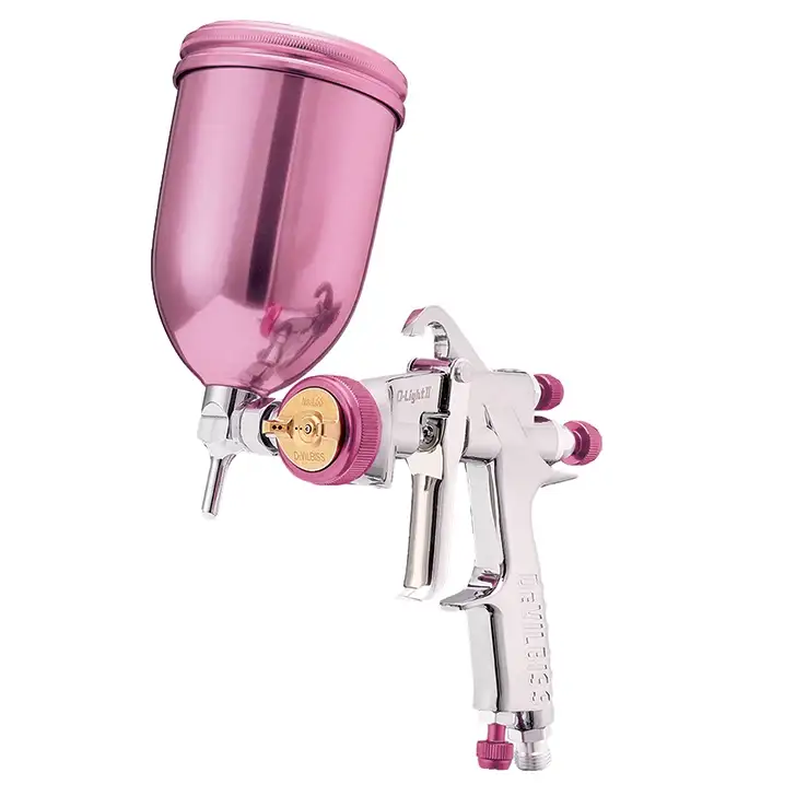 O-Light II オーライト2 LVMP 重力式スプレーガン O-LIGHT2-13G 桜カラー シリーズは数量限定で 特別なさくらカラー仕様です。カップも同色で整えました。 O-Light II オーライト2 LVMP 重力式スプレーガンは軽量で作業性のよいスプレーガンです。 人間工学を基に改良されたエルゴノミクスデザインで握り部のフィット感が向上しました。 全機種に塗着効率が高いLVMP低流量中圧力仕様を採用し高微粒化・高塗着効率を実現しています。 1台で広範囲の用途にご使用いただける万能スプレーガンです。